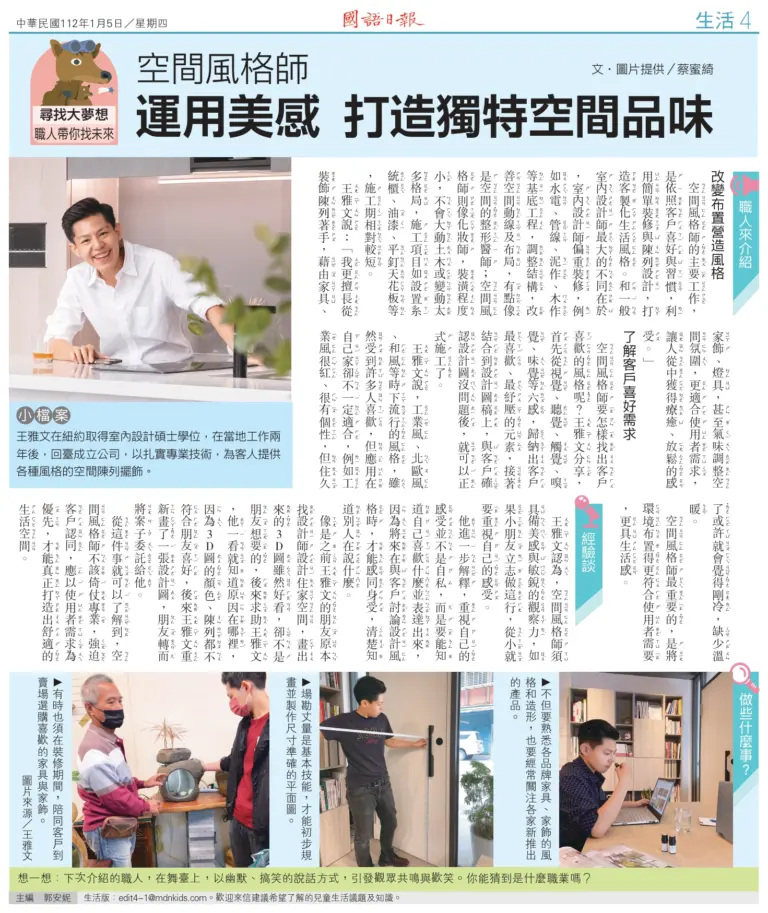 國語日報-空間風格師 運用美感 打造獨特空間品味